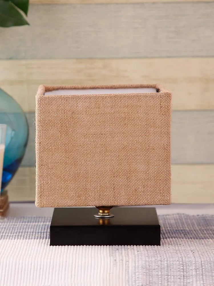 White Jute Shade Country Table Lamp With Black Base